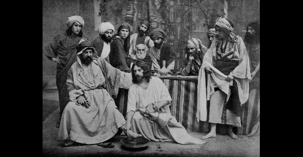 « Le Baiser de Judas » : …Après avoir baisé la main de Jésus, Judas le baise sur la joue droite. – Judas (M. Mounet-Sully), Jésus (M. Albert Lambert) – Le Film d’Art – PATHE 1908